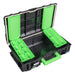 Esta caja cuenta con dos organizadores con múltiples compartimentos para oreganizar y clasificar una gran variedad de herramientas. Dispone de junta en la unión para asegurar un cierre hermético.